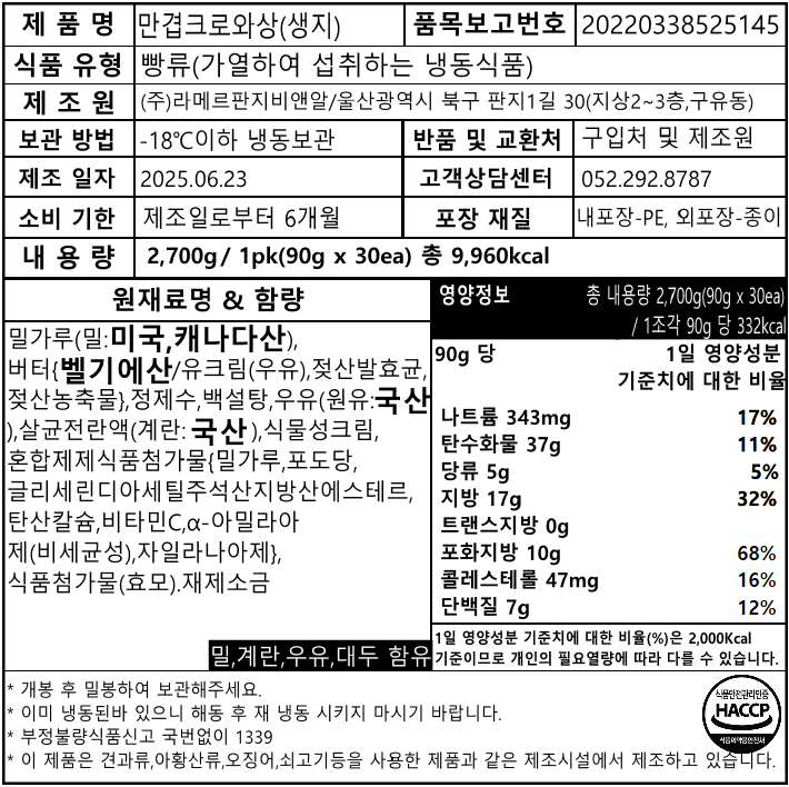 만겹크로와상_생지_(90g*30ea)*2pk/box