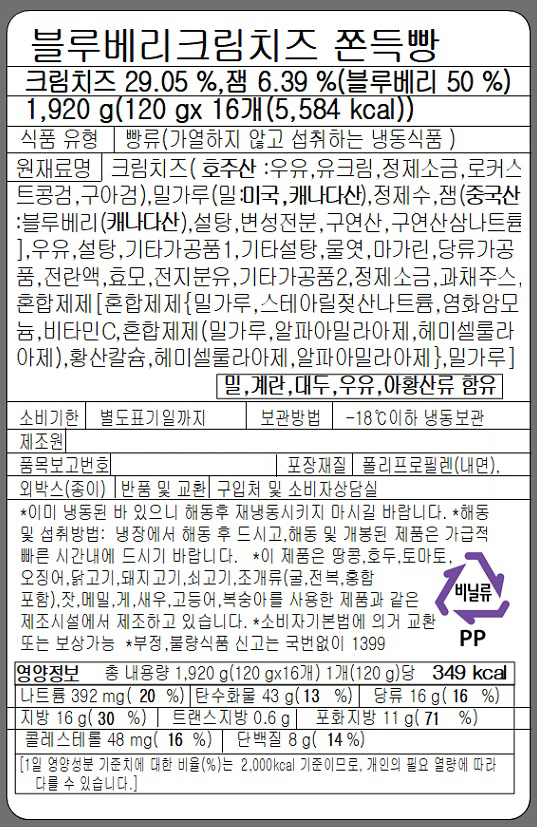 파미유_블루베리 크림치즈 쫀득빵(120g*16ea/BOX)