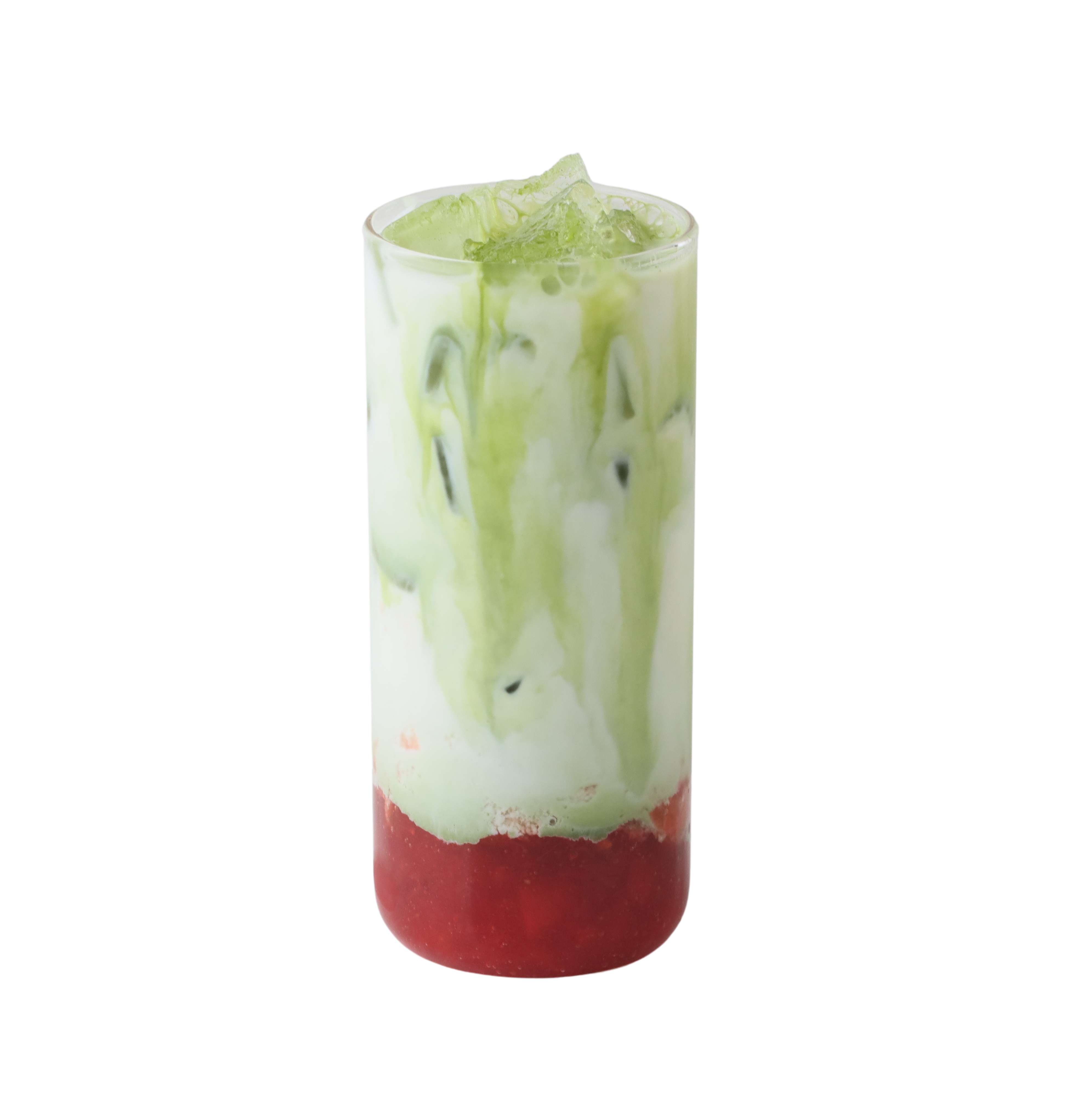고소한 우유와 말차,달콤한 딸기가 어우러진 말차 딸기 라떼