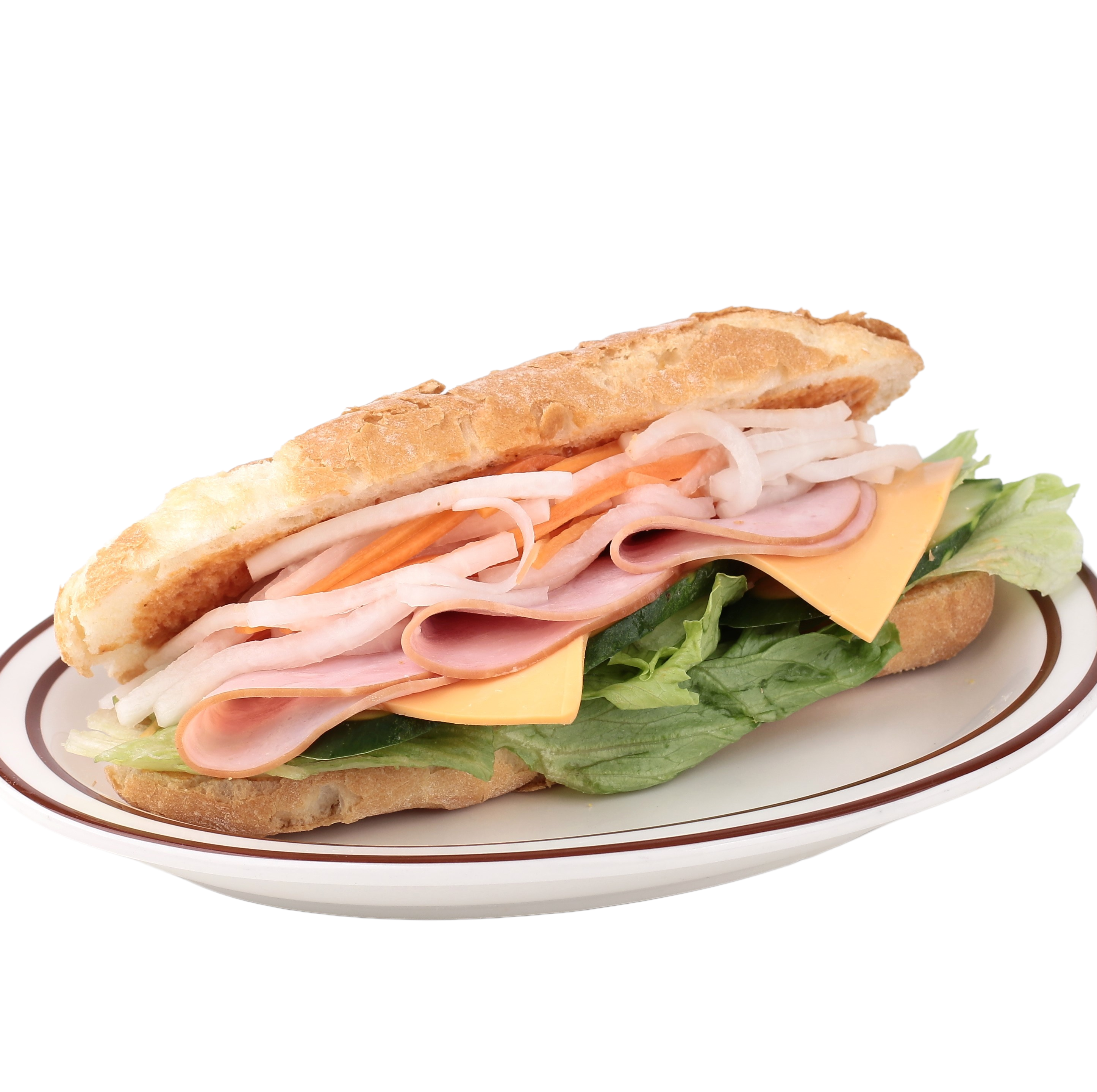고소한 더블업 치즈와 짭조름한 햄이 어우러져 든든하게 즈길 수 있는 반미 샌드위치