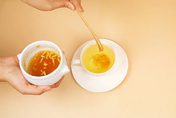 캐모마일 2g을 뜨거운 물 250ml에 넣고 5분 우린다.