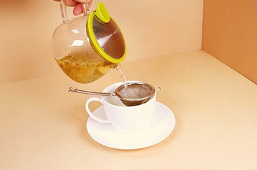 다 우려진 차를 스트레이너로 거르며 잔에 따라준다.