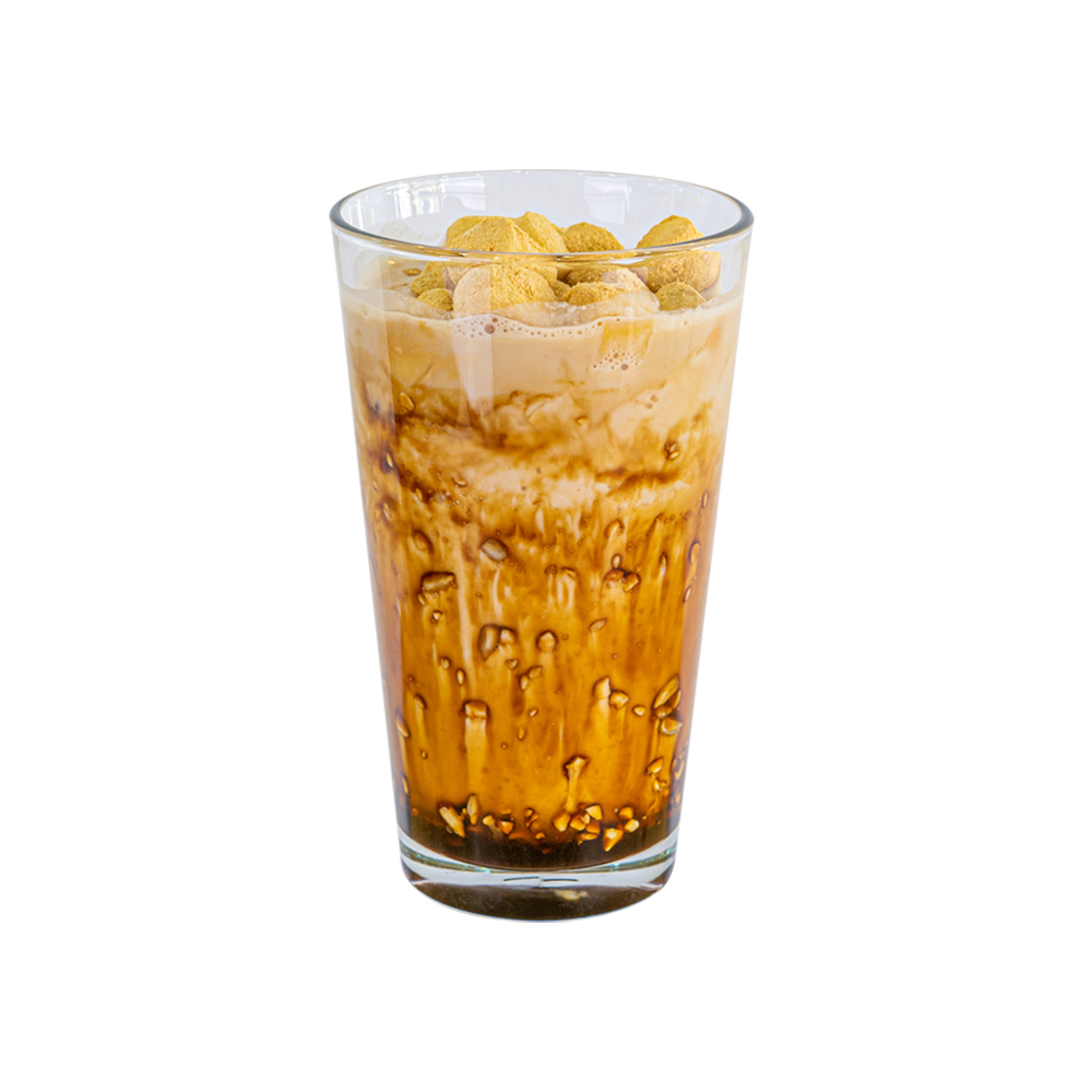 흑당베이스와 오곡라떼를 사용하여 만든 맛과 식감이 좋은 프라페 메뉴입니다.