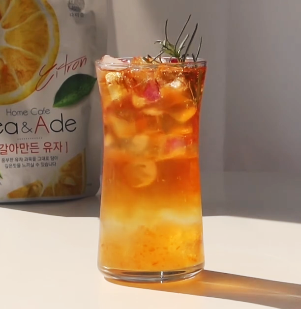 상큼한 유자와 블랙티의 풍미가 어우러지는 티 에이드 메뉴